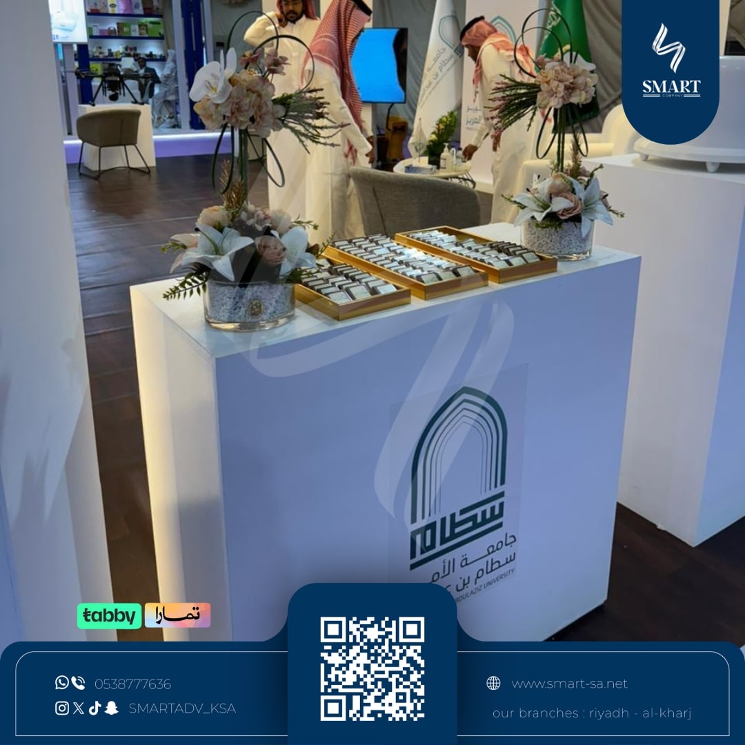 الأعمال المنفذة | تنفيذ البوث بشكل كامل - تصميم وتنفيذ المطبوعات - تصوير سوشل ميديا - دروع |